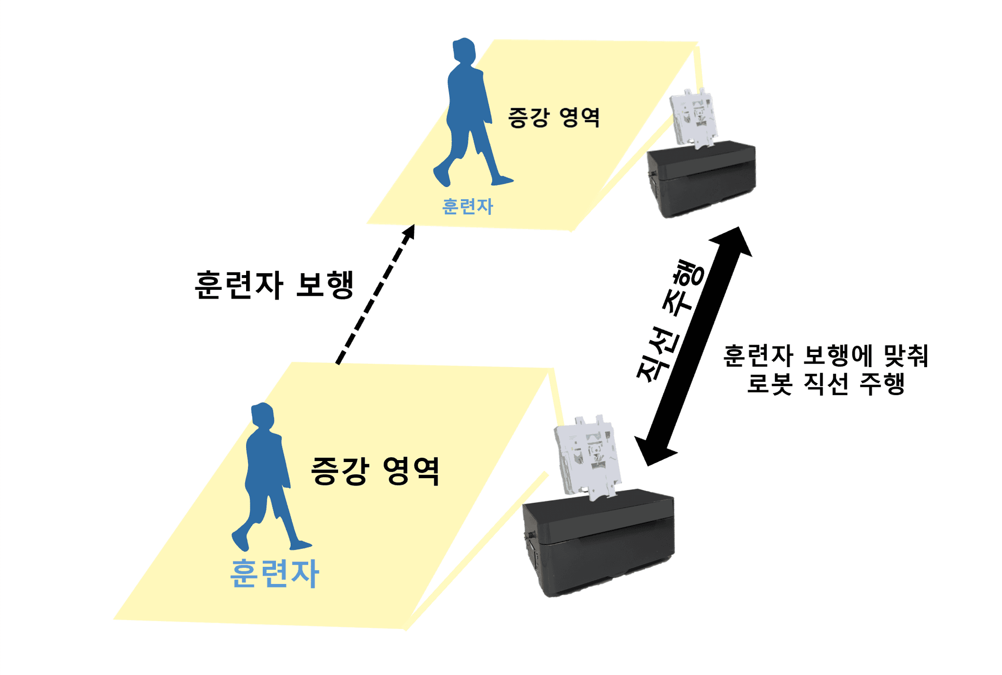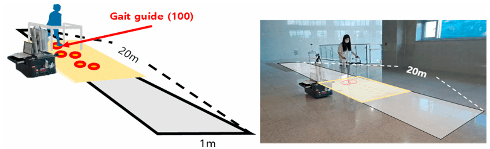 이동 로봇을 통해 바닥에 가상 콘텐츠를 증강하고, 훈련자는 증강된 콘텐츠와 인터랙션을 수행하며 보행 훈련을 수행함