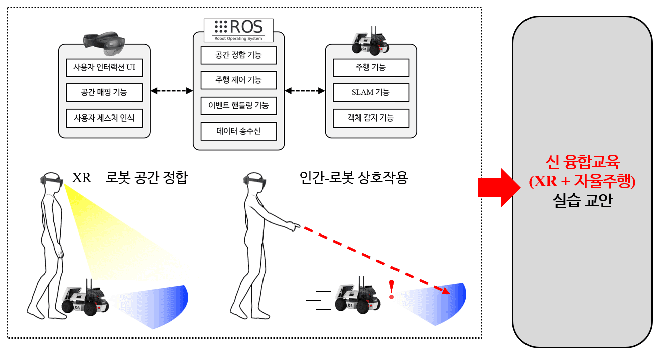 시스템은 이동로봇(구동부), 인식부, 증강부(투사형 AR 모듈), 보행훈련용 가상현실 콘텐츠로 구성되어, 사용자의 보행을 실시간으로 인식하고 시각적 피드백을 제공함
